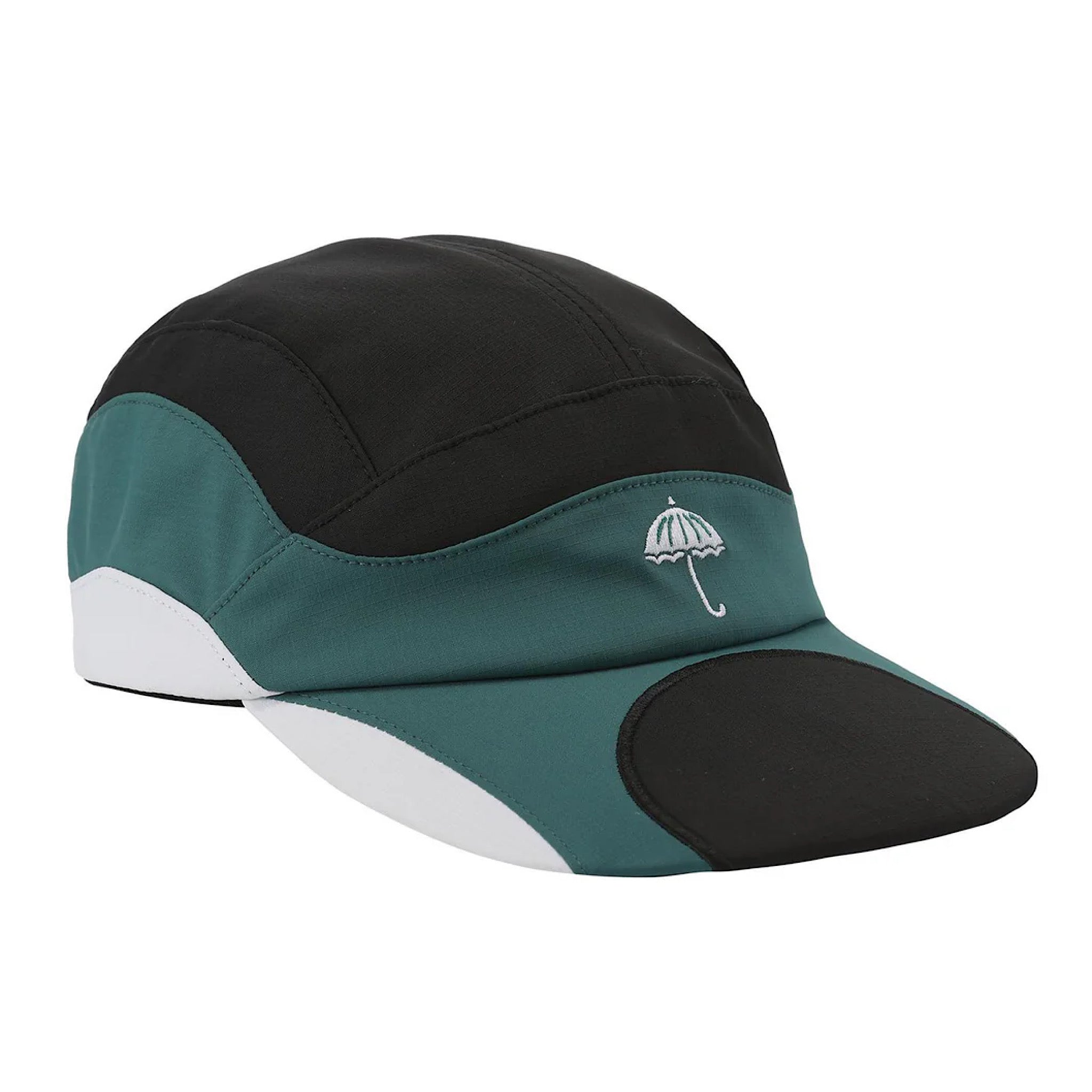 5 PANEL CAP WITH WAVY COLOR BLOCKING DETAILS.EMBROIDERIES AT CENTER FRONT AND ON SIDE.MATERIAL: 95% NYLON 5% SPANDEX